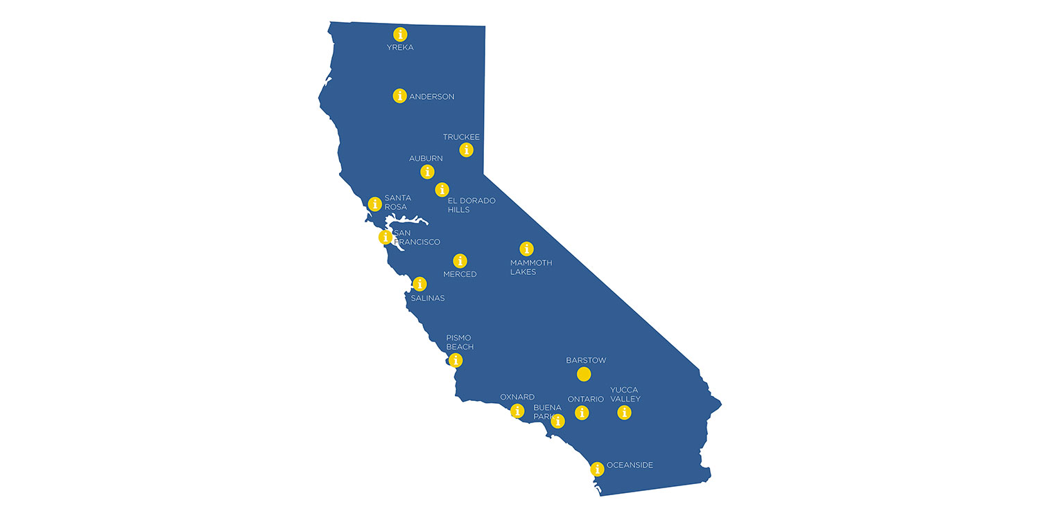 I Welcome Center offerti da Visit California si trovano sparsi in tutto lo stato, in modo da fornire un servizio costante e regolare ai turisti e i visitatori provenienti da tutto il mondo.