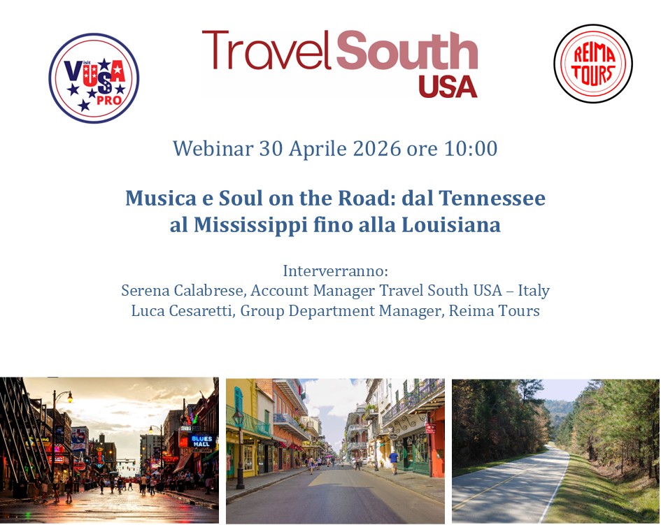 Visit USA Italia > Webinar > Giovedì 30/04/2026 | ore 10.00 | Musica e Soul on the Road: dal Tennessee al Mississippi fino alla Louisiana.